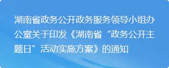 為更好發揮政務公開促落實、強監管的積極作用,進一步提高公開的含金量、覆蓋面、參與度,服務“三高四新戰略定位和使命任務,助推“三大支撐八項重點”工作落實落地,湖南省從2022年5月始,首創“政務公開主題日”活動,全年將結合有關單位職能職責,先后推出各種不同主題的系列活動,實行“互動式”公開、"面對面”解讀