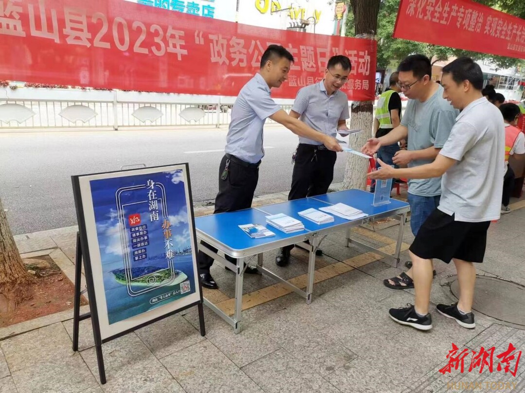 湖南日報·新湖南客戶端6月17日訊(通訊員 劉海寶)今年6月是第22個全國“安全生產月”。6月16日,藍山縣政務公開政務服務領導小組辦公室聯合縣安全生產委員會辦公室,組織各機關部門在縣城塔峰中路開展以“人人講安全 個個會應急”為主題的政務公開主題日活動。