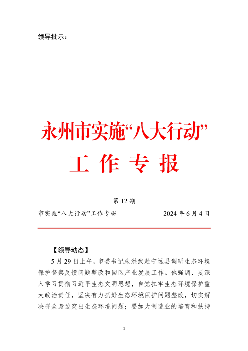 永州市實(shí)施“八大行動(dòng)”工作專報(bào)(第12期)