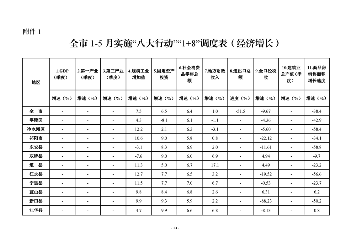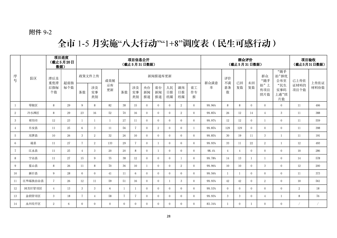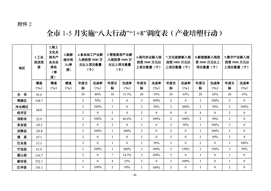 永州市實施“八大行動”工作專報(第14期)