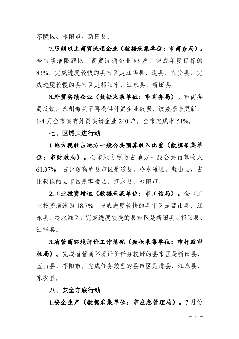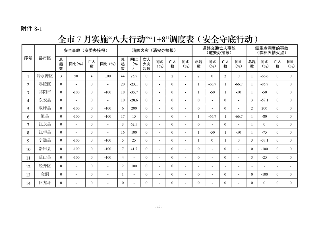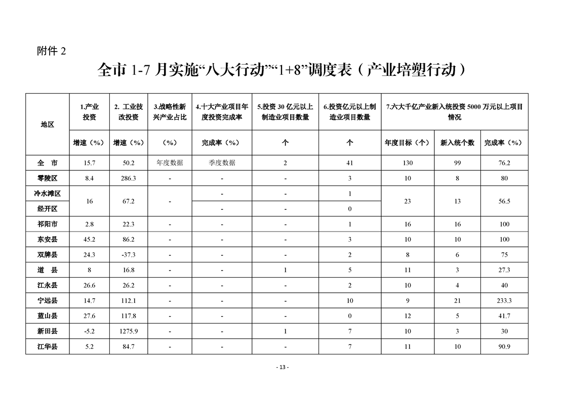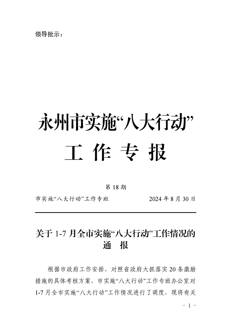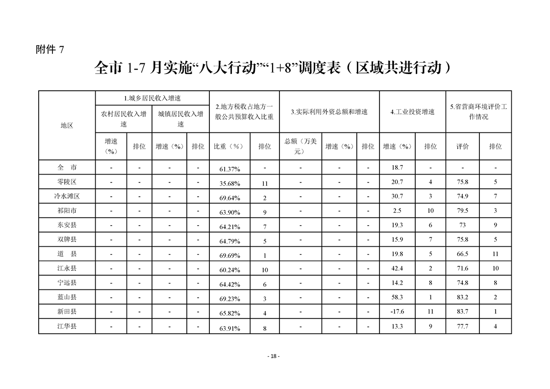 永州市實施“八大行動”工作專報(第18期)(1-7月通報)
