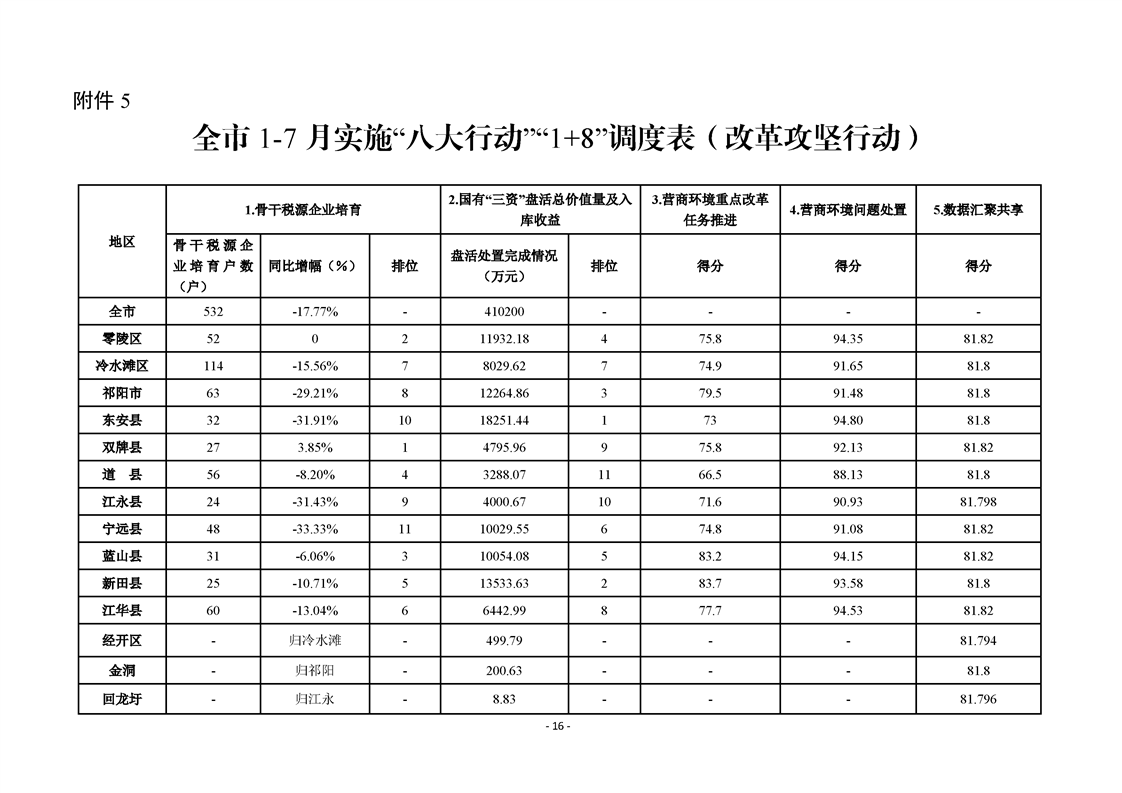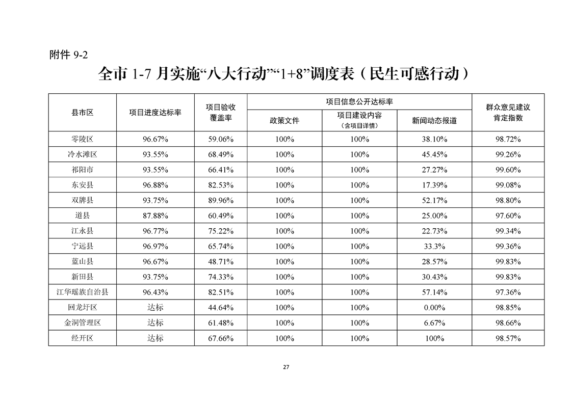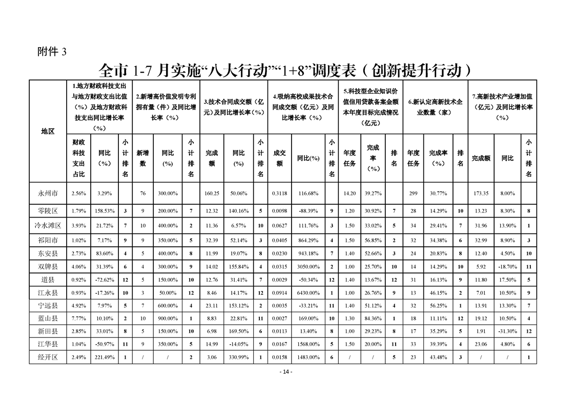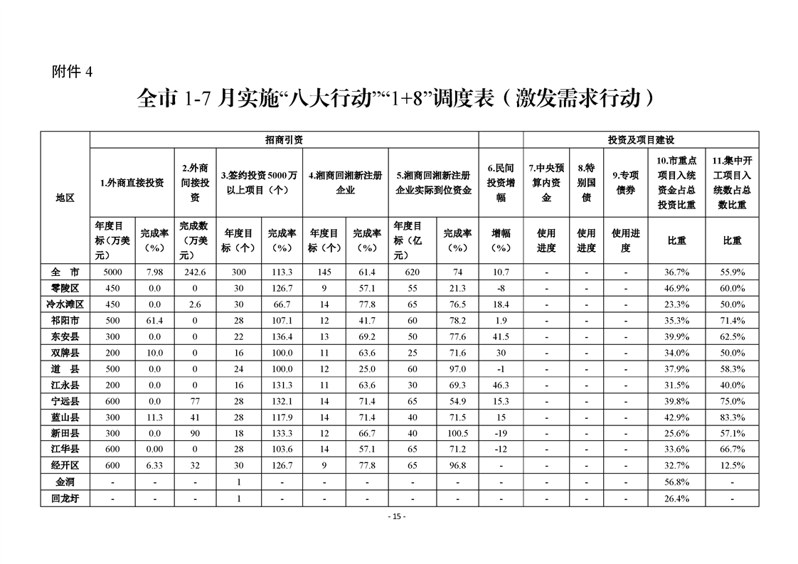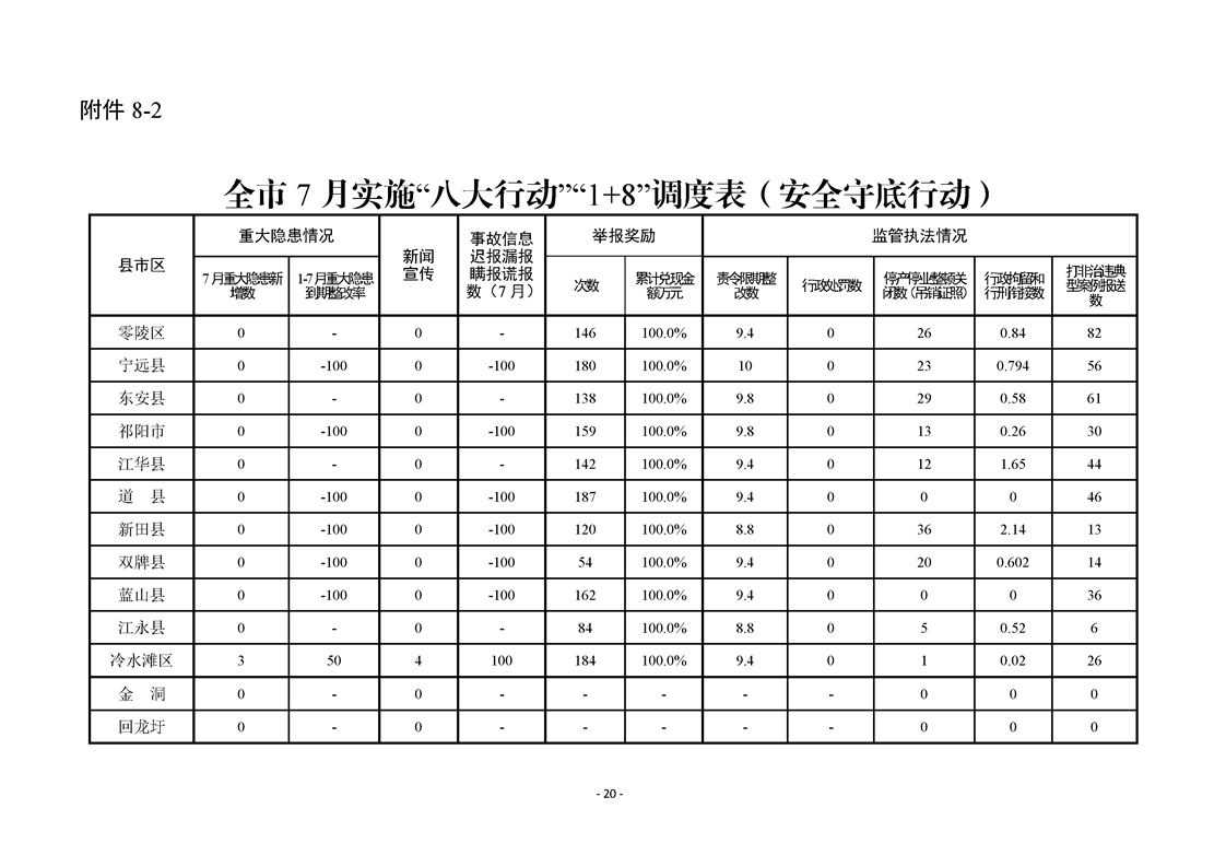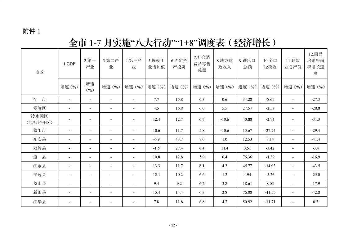 永州市實施“八大行動”工作專報(第18期)(1-7月通報)
