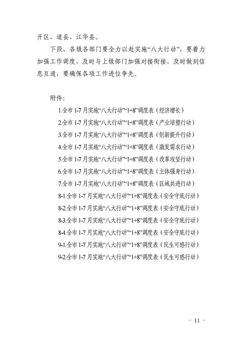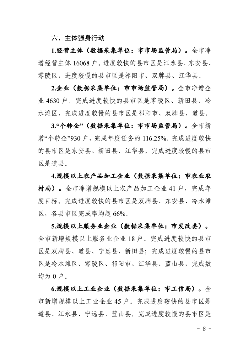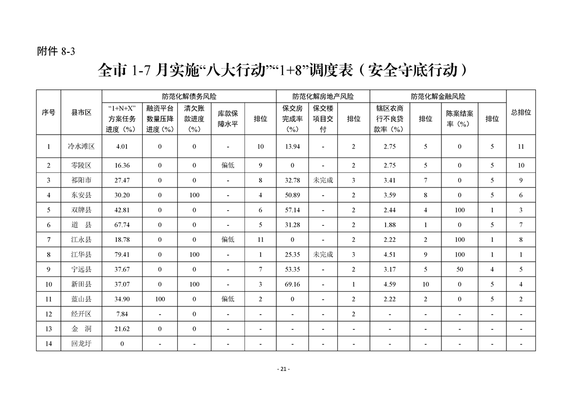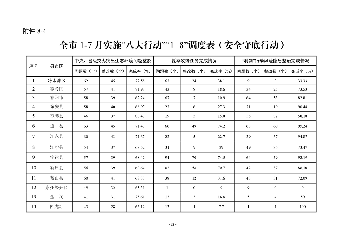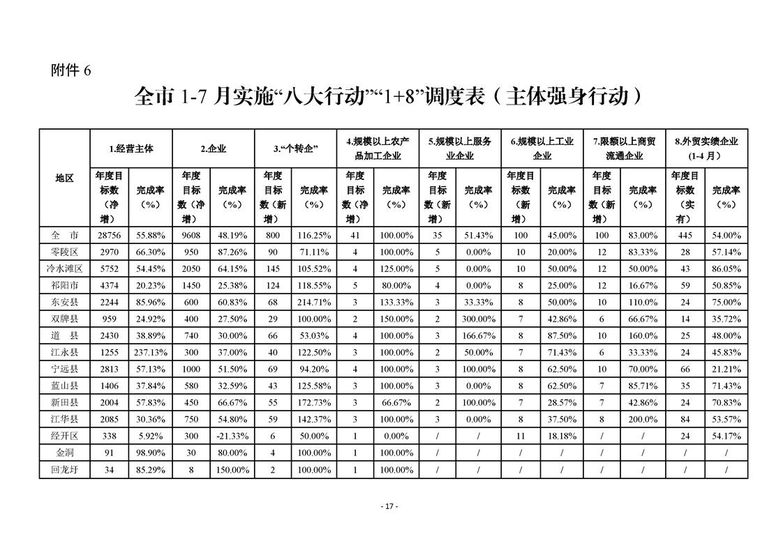 永州市實施“八大行動”工作專報(第18期)(1-7月通報)