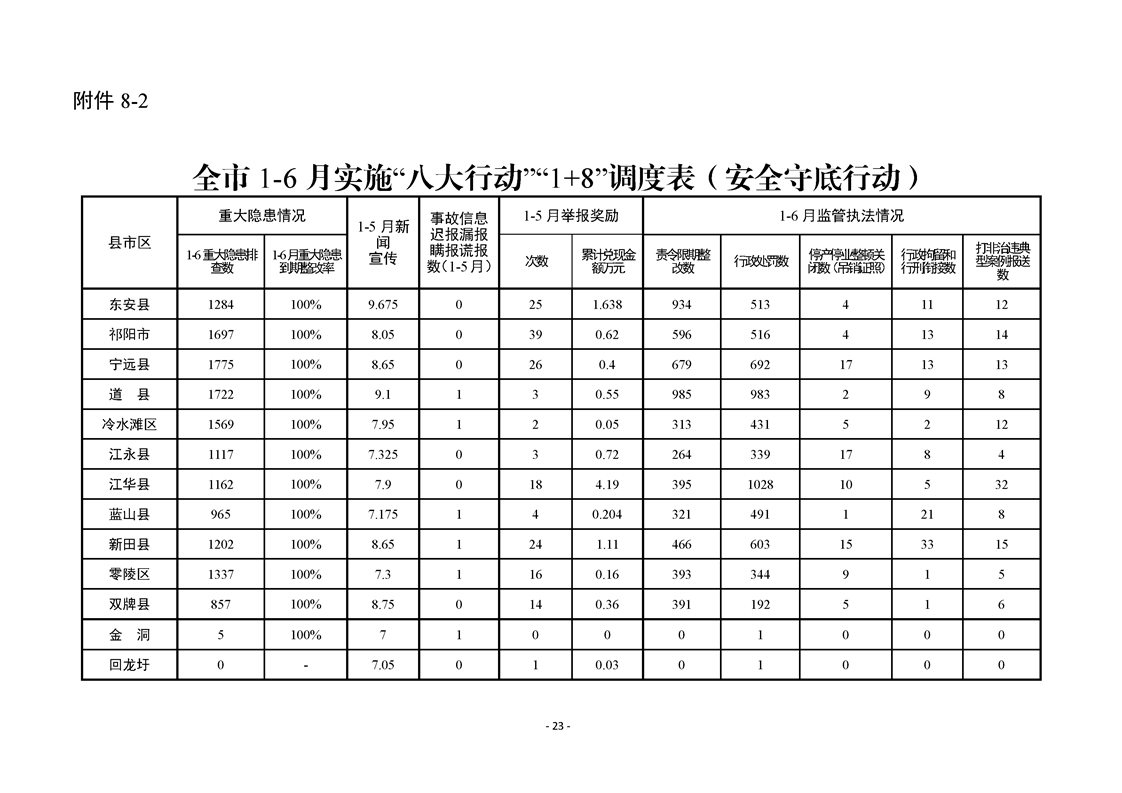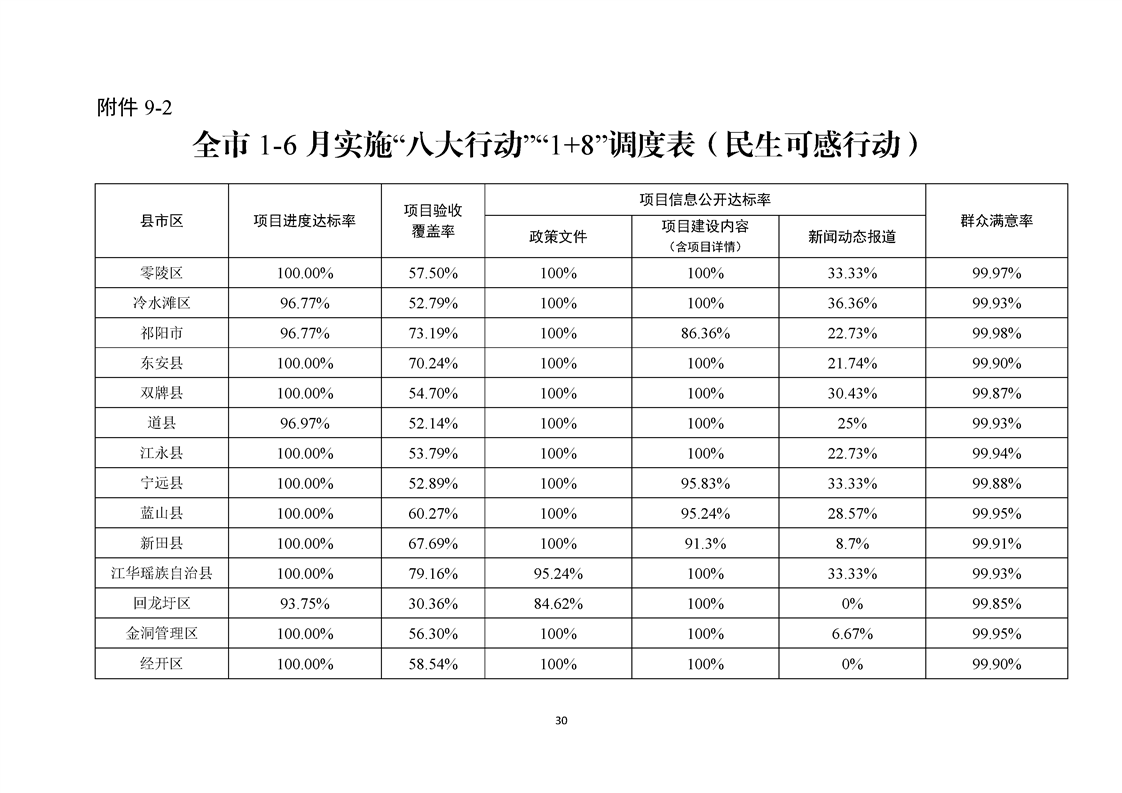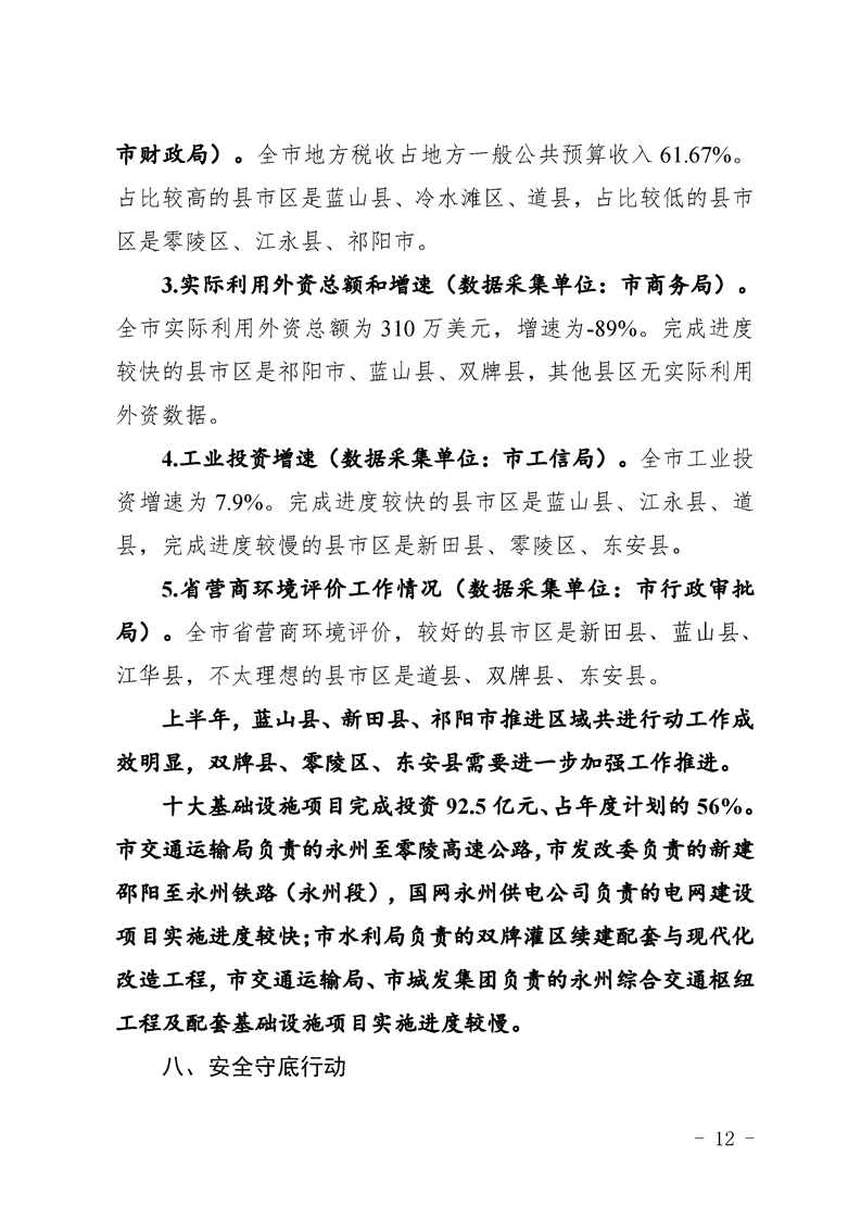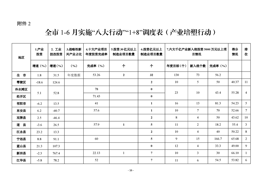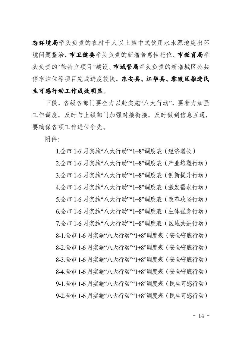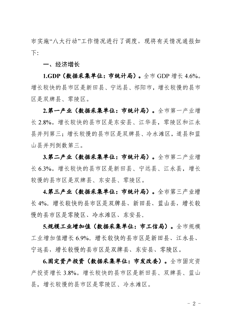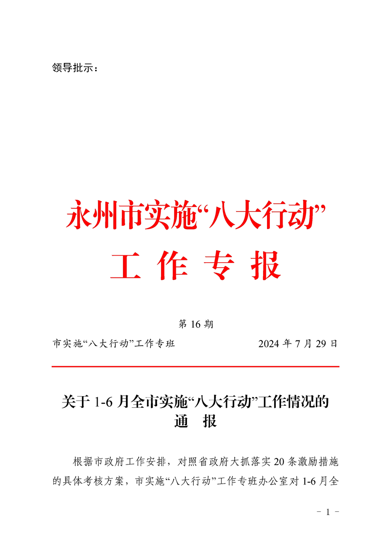 永州市實施“八大行動”工作專報(第16期)上半年通報