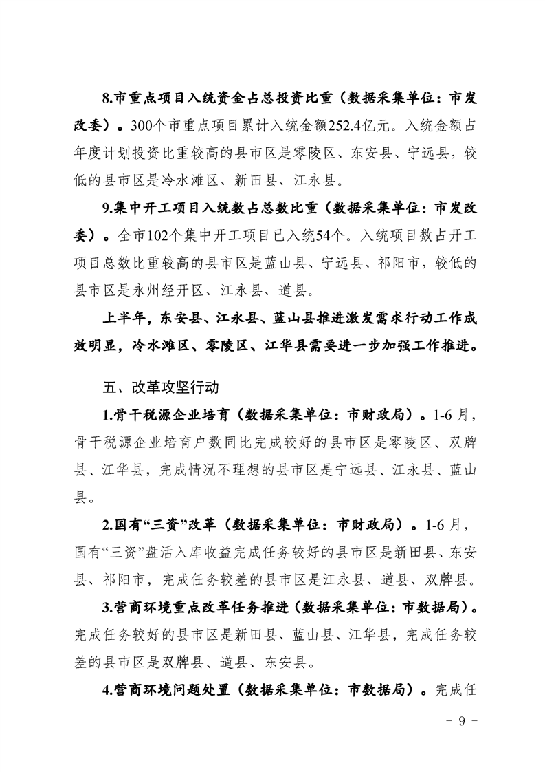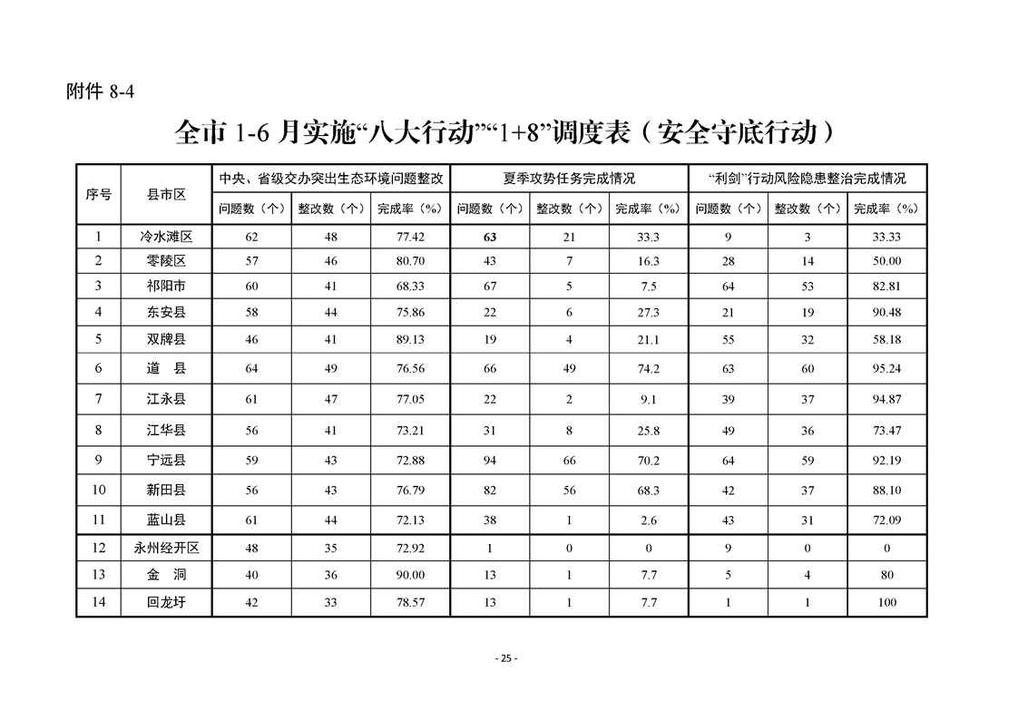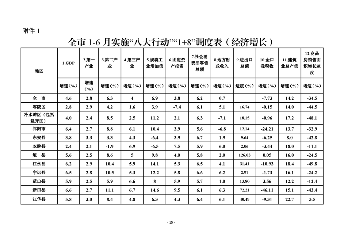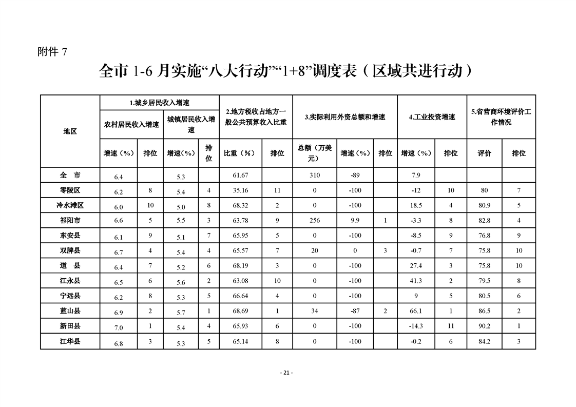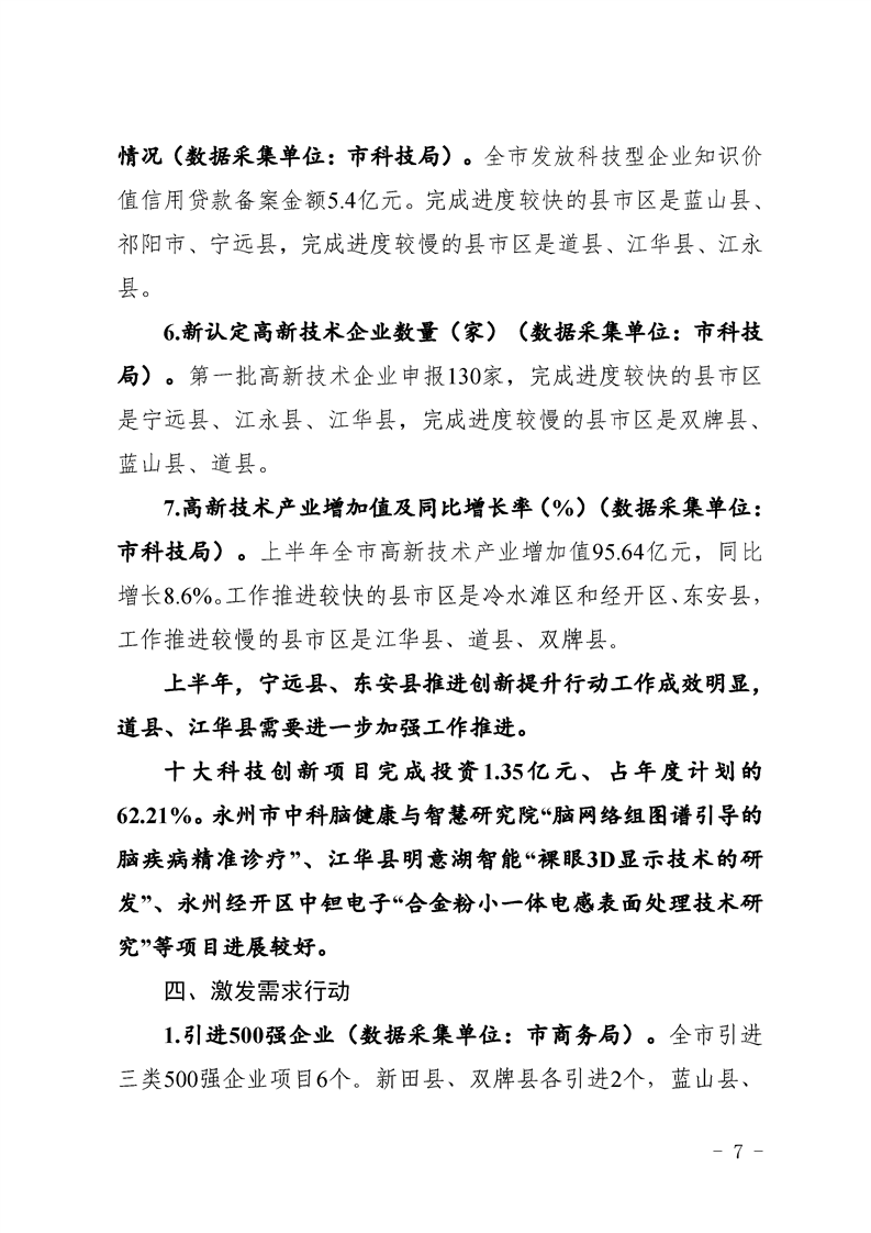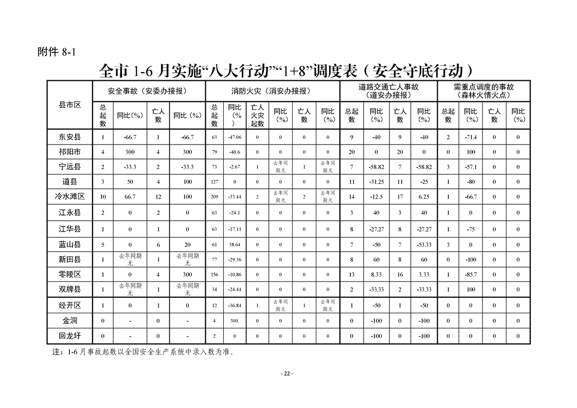 永州市實施“八大行動”工作專報(第16期)上半年通報