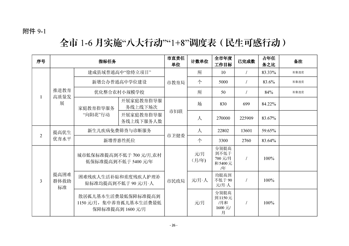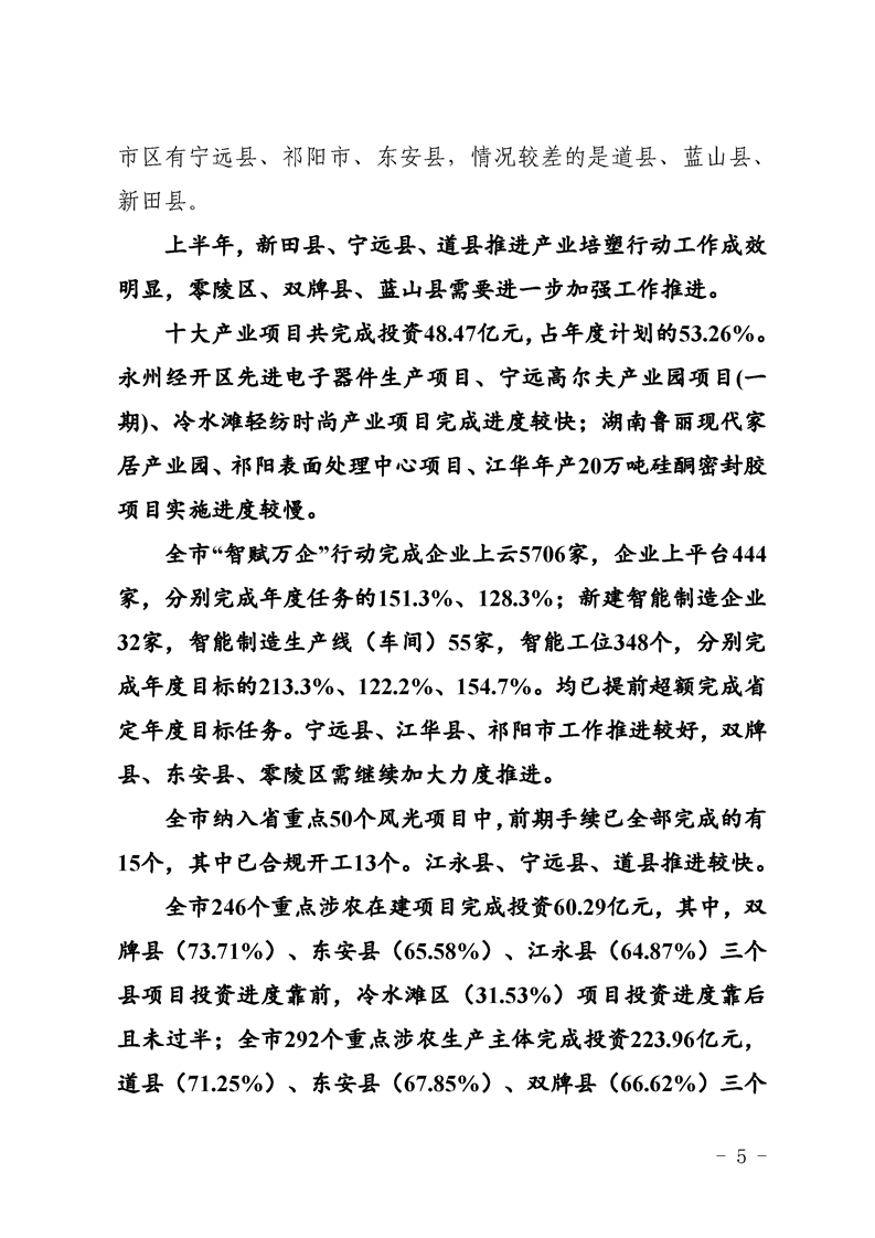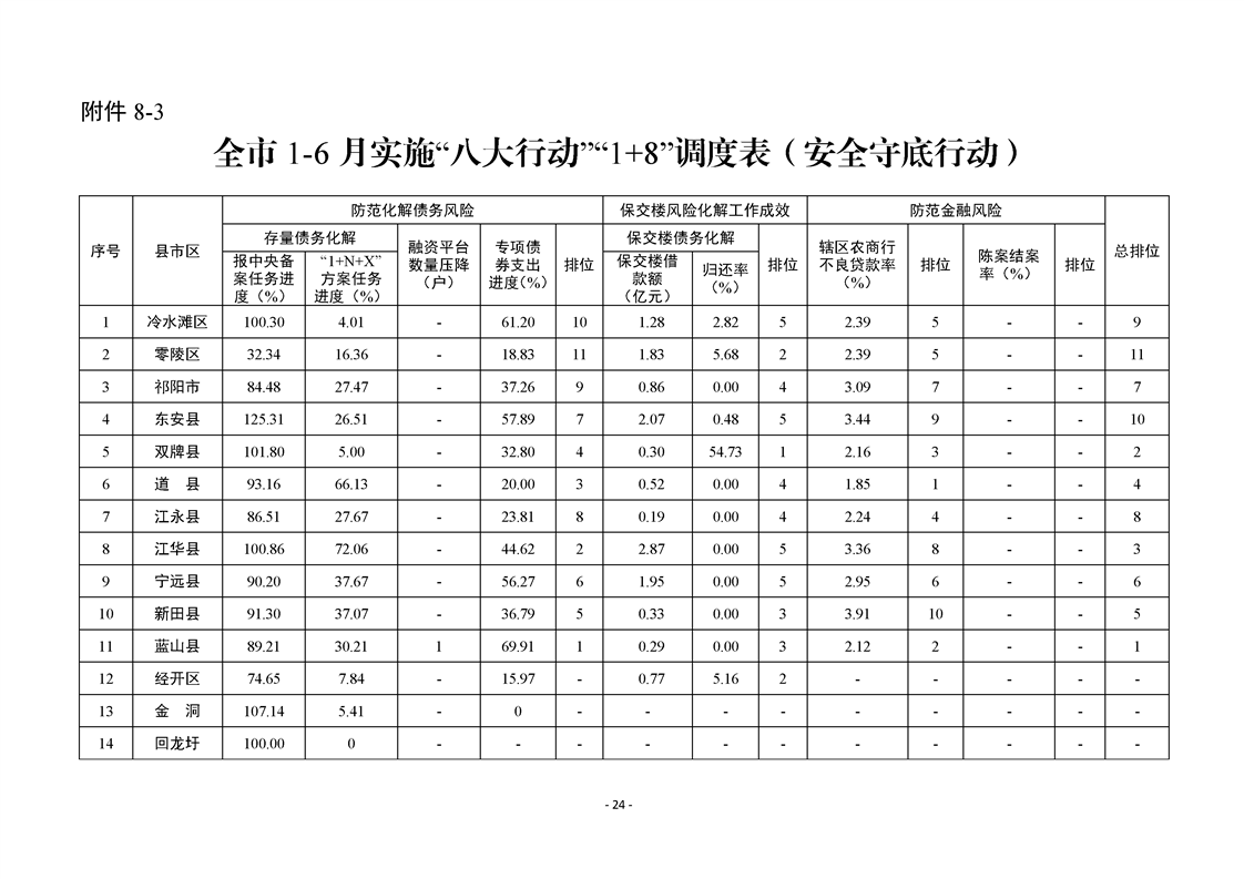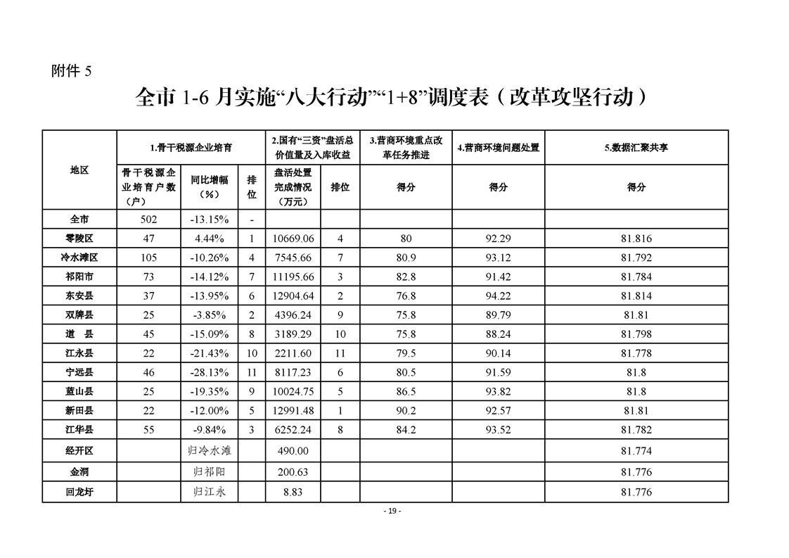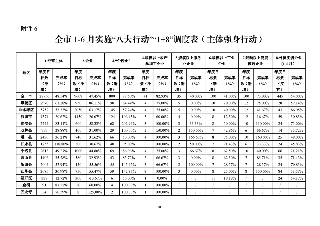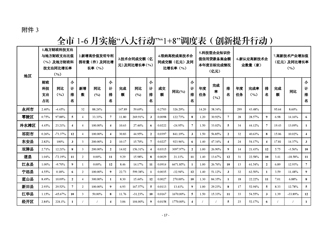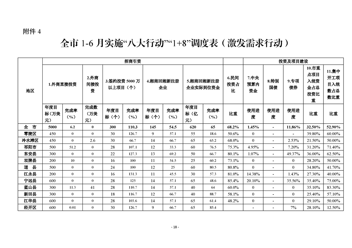 永州市實施“八大行動”工作專報(第16期)上半年通報