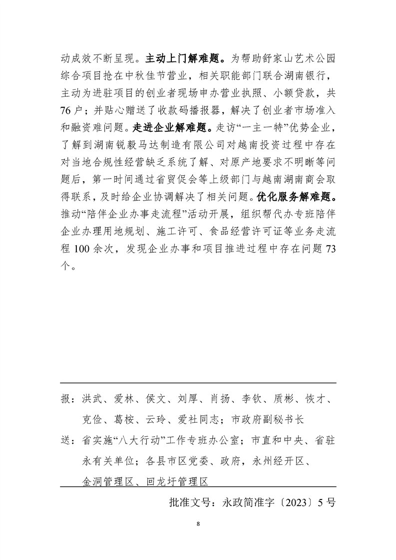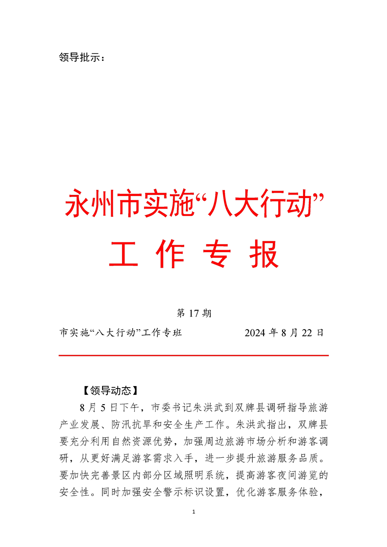 永州市實施“八大行動”工作專報(第17期)