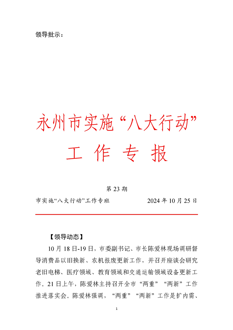 永州市實(shí)施“八大行動(dòng)”工作專報(bào)(第23期)