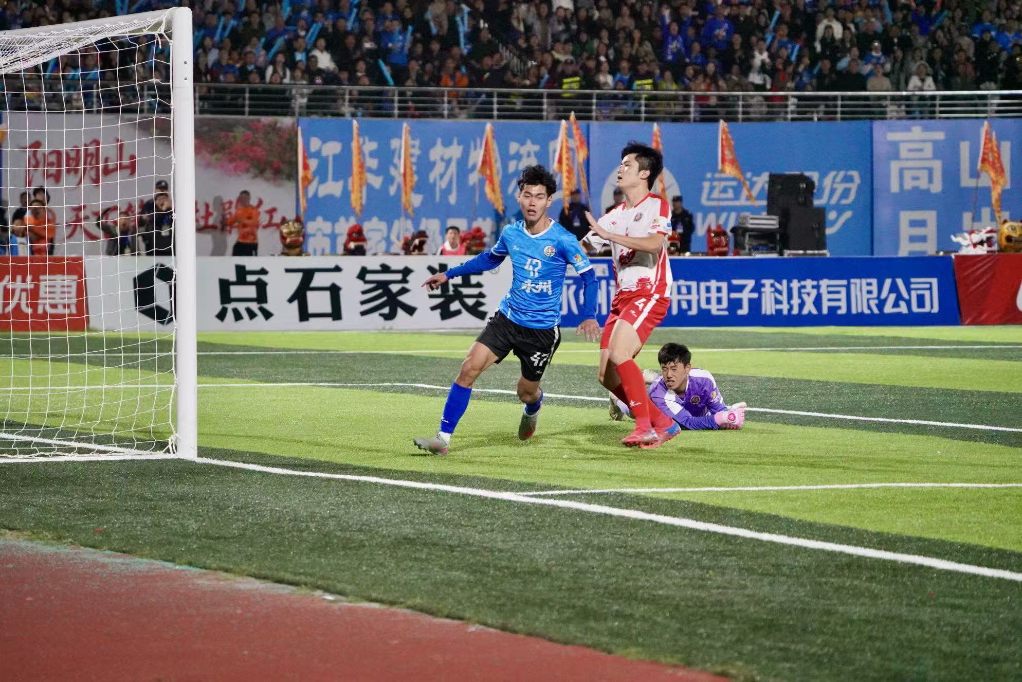 下半場易邊再戰(zhàn),長沙隊換人繼續(xù)加強進攻。面對對手的猛烈攻勢,永州隊依靠穩(wěn)健的防守和頑強斗志,多次化解對手攻勢,其中門將成為球隊防線的“定海神針”,多次上演高接低擋的精彩表現(xiàn)。隨著比賽進行,雙方攻防轉(zhuǎn)換節(jié)奏加快,拼搶十分激烈。比賽進行到第79分鐘,下半場替換上場的長沙隊66號譚想一記頭球攻破永州隊大門,將比分扳平。比賽第81分鐘,長沙隊在禁區(qū)外的一腳遠射擊中橫梁彈出。補時階段,雙方都未能把握住機會再次破門。最終,全場比賽結(jié)束,永州隊1:1逼平實力更強的長沙隊。
