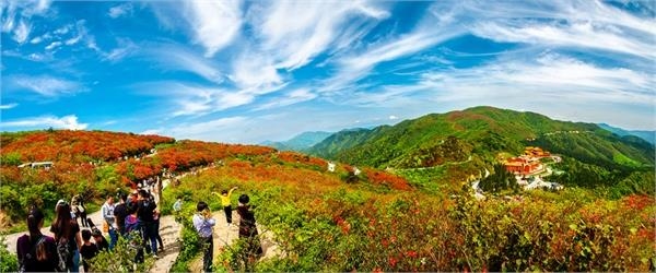 最惜杜鵑花爛漫,春風吹盡不同攀。人間四月芳菲盡,陽明杜鵑始盛開。每年4月初到5月中下旬,陽明山漫山遍野的野生杜鵑花競相開放,清香綿延數十里,由山腳向山脊層層延伸,先紫后紅,蔚為壯觀,被譽為“天下第一杜鵑紅”。
