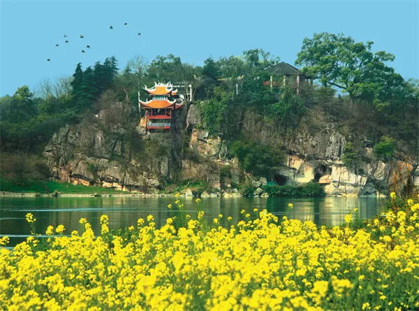 朝陽巖:位于零陵古城瀟水西岸,唐代詩人元結坐船途經此處,醉心于山水風光,停船游覽數日,又因這巖洞口正朝著東方太陽升起之處,故他命名此地為“朝陽巖”。朝陽巖石刻為全國重點文物保護單位,石刻共累計存下了125方,有米芾、黃庭堅、周敦頤、何紹基等書法大家留下的石刻,柳宗元謫居永州時常來游玩,巖石壁有明代人補刻柳宗元《漁翁》詩,字跡清晰可辨。