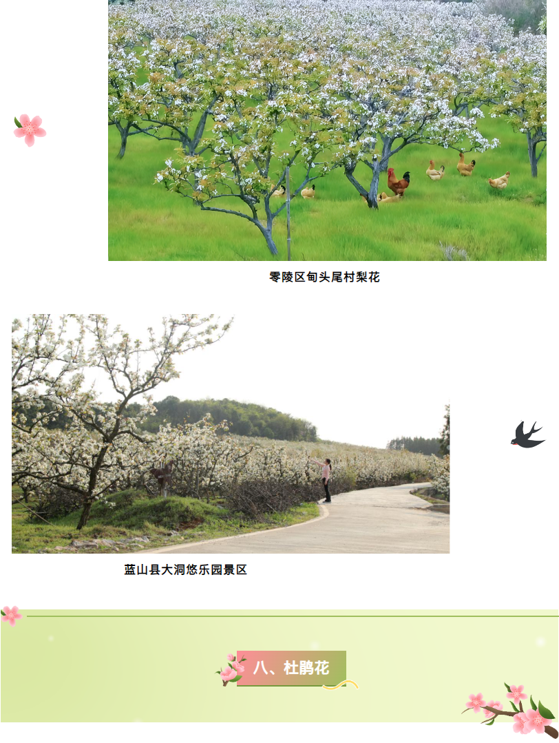 1. 零陵區甸尾頭村:湖南最美50個賞花地之一,3000畝梨花一夜怒放,如云如雪,徜徉其中,感受春日的詩意。