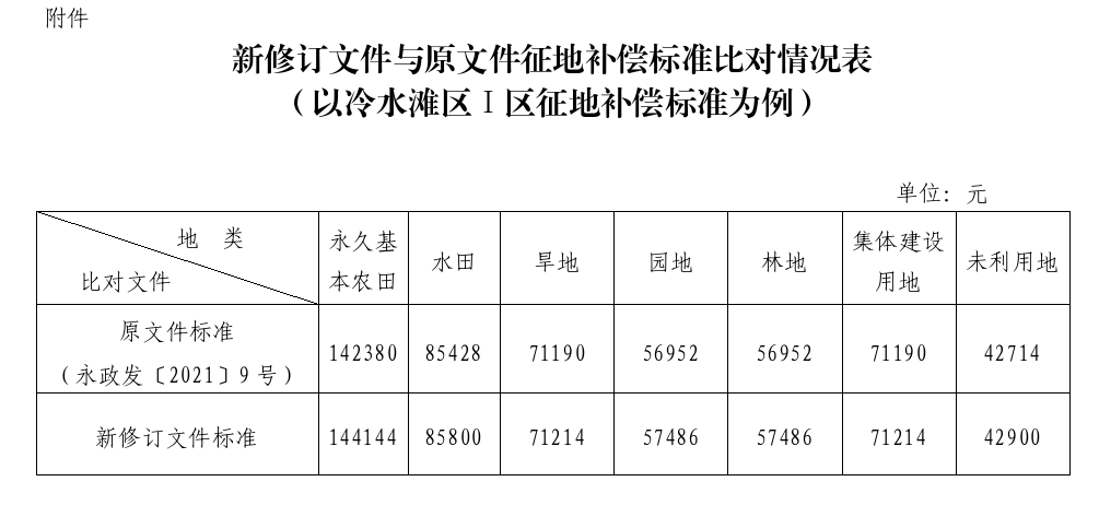 附件:新修訂文件與原文件征地補償標準比對情況表