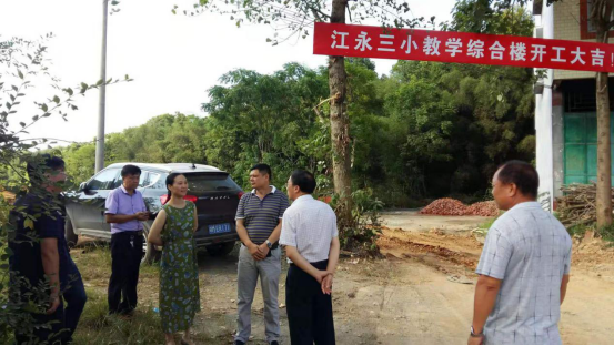(7月22日,江永縣委常委、宣傳部長楊誠,副縣長何娟現場調度江永三小建設工作。)
