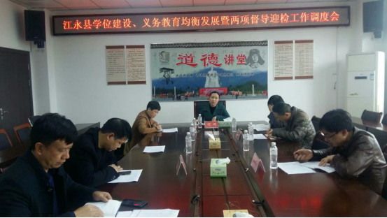(6月23日,江永縣副縣長何娟主持召開義務教育均衡發展迎檢工作調度會。)
