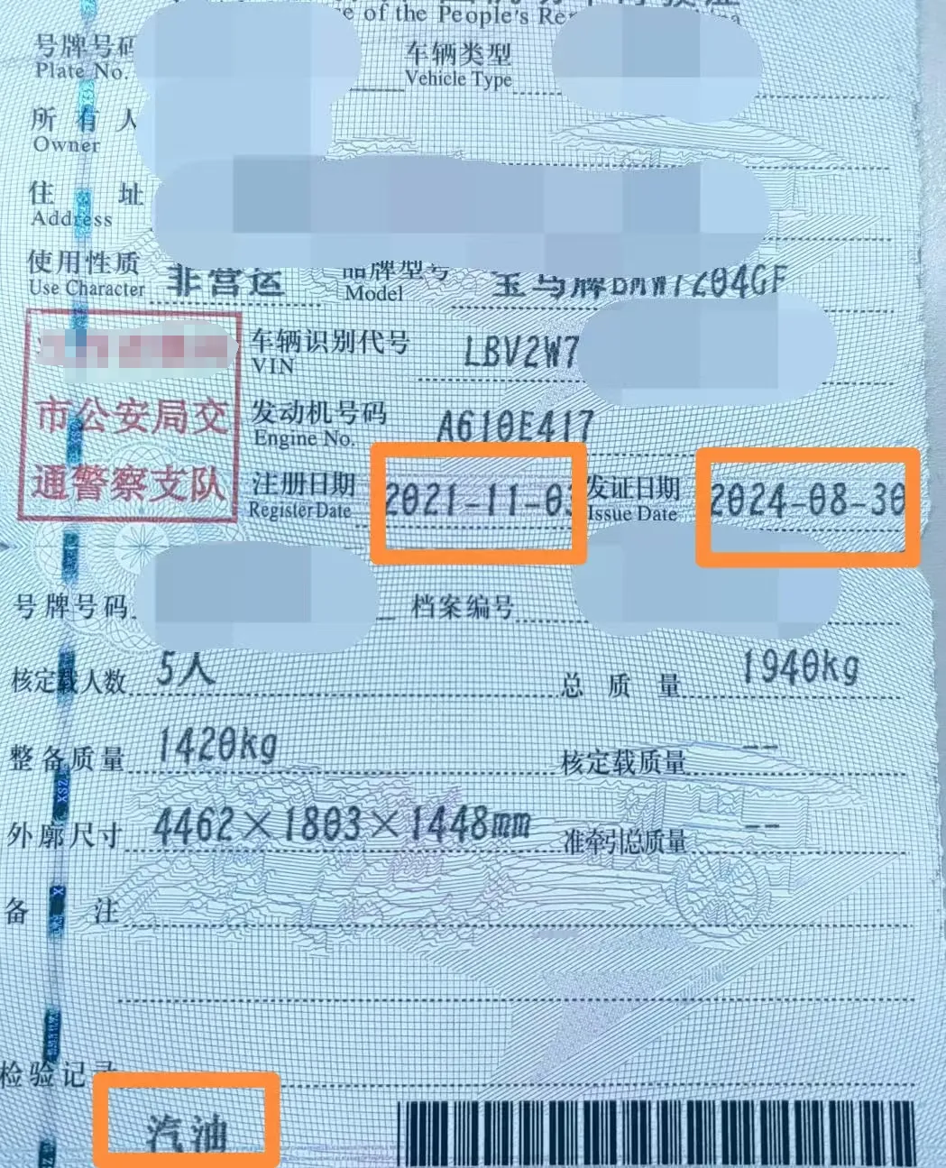 燃料為汽油的、注冊登記日期應在2011年6月30日前,燃料為柴油的、注冊登記日期應在2013年6月30日前,發證日期均為2024年7月25日前。