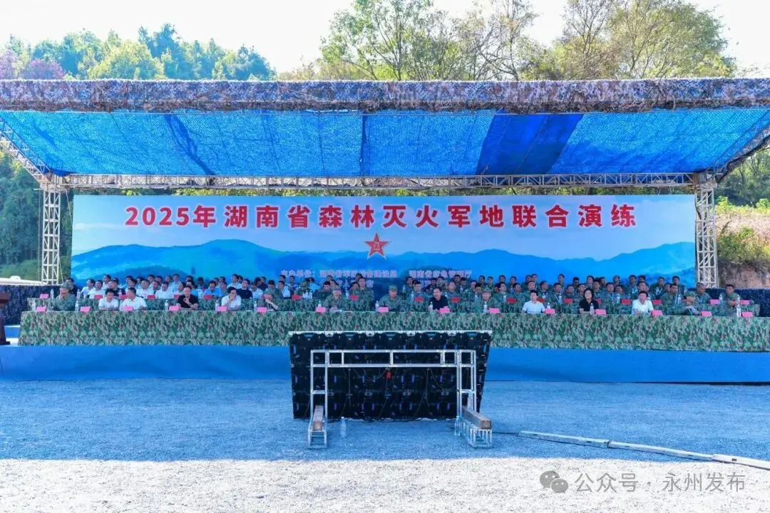 10月10日,2025年湖南省森林滅火軍地聯合演練在永州祁陽舉行。省軍區司令員林佳春出席并講話,市委書記朱洪武致辭。
