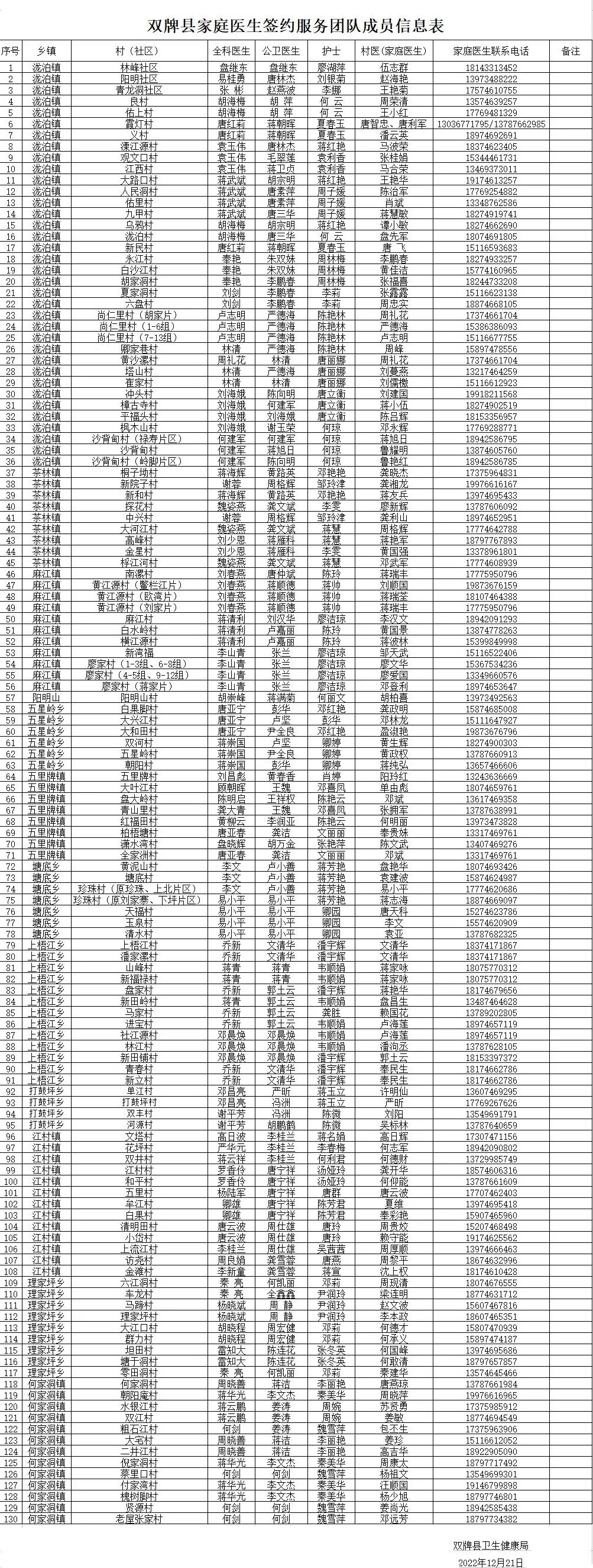 雙牌縣關于重點人群家庭醫生簽約服務團隊的公示