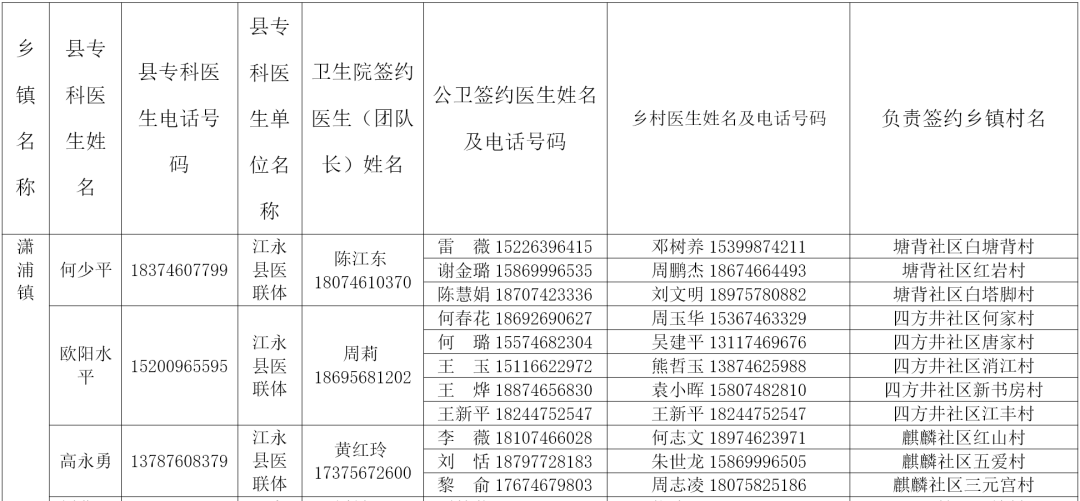 江永縣關于重點人群家庭醫生簽約服務團隊的公示