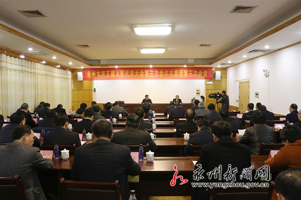 永州新聞網(wǎng)訊(記者 唐波濤) 1月16日上午,永州市第五屆人民代表大會第三次會議主席團召開第三次會議,市委書記、市人大常委會主任李暉,市委常委、組織部長吳志雄出席,市人大常委會副主任袁火林主持。