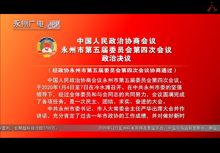 政協(xié)永州市第五屆委員會第四次會議常務(wù)委員會工作報告