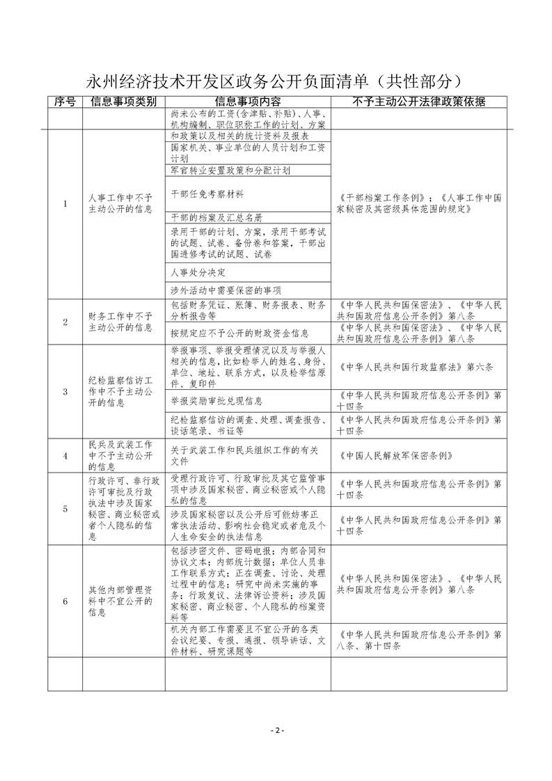 永州經(jīng)濟(jì)技術(shù)開發(fā)區(qū)政務(wù)公開負(fù)面清單