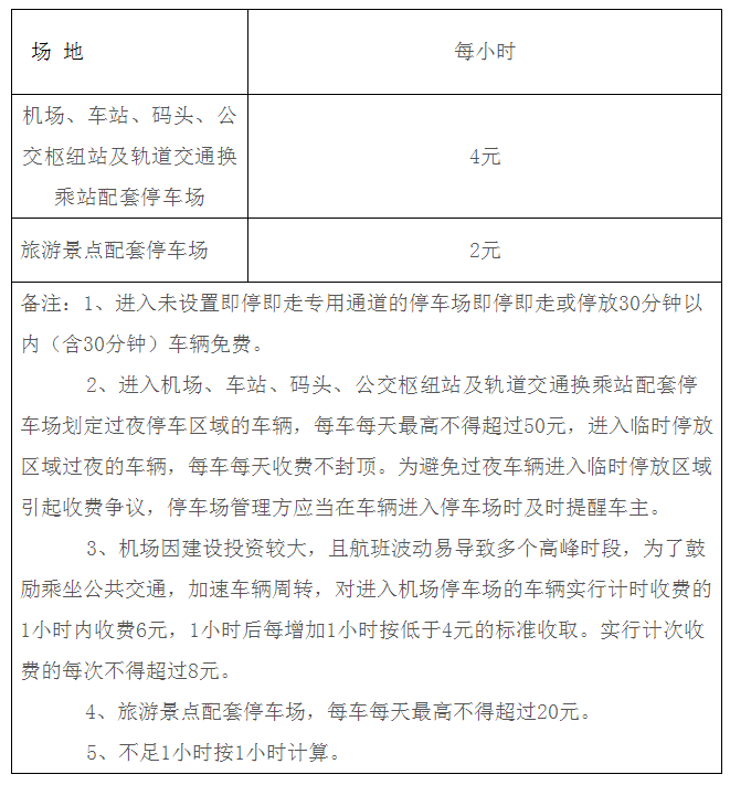 5、機(jī)場(chǎng)、車站、碼頭、公交樞紐站及軌道交通換乘站、旅游景點(diǎn)配套停車場(chǎng)機(jī)動(dòng)車停放服務(wù)最高收費(fèi)標(biāo)準(zhǔn)