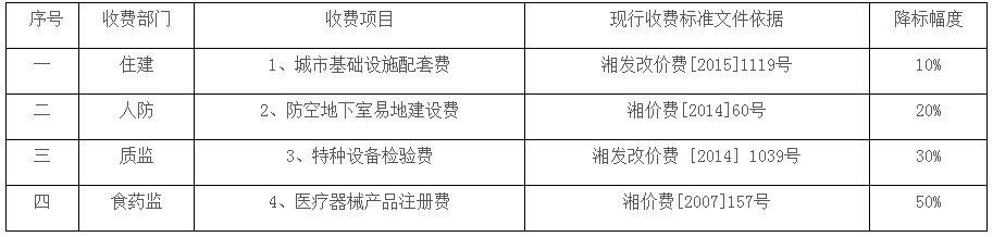 為了進一步減輕企業負擔,創造良好經濟發展環境,根據湖南省政府第71次常務會議精神,決定采取分步推進、分批降標的方式,2016年度第三次降低部分涉企行政事業性收費標準,現將有關事項通知如下: