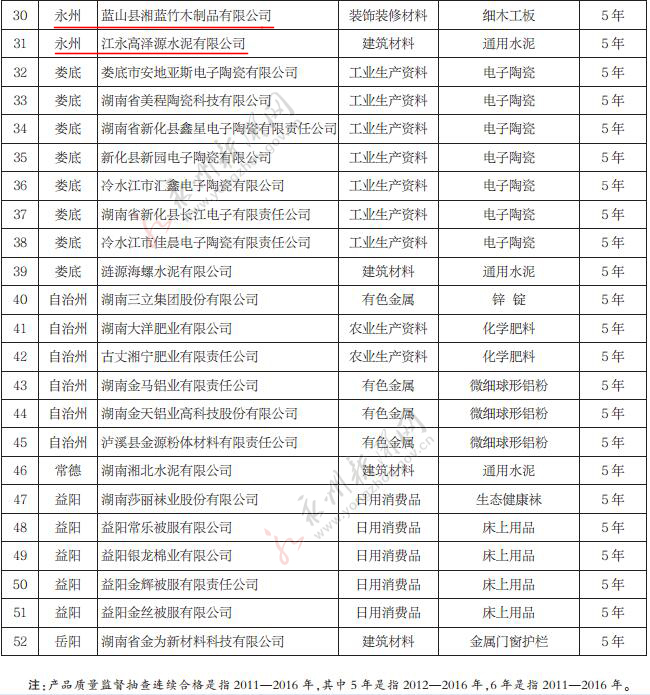 根據(jù)《中華人民共和國產(chǎn)品質(zhì)量法》、《湖南省產(chǎn)品質(zhì)量監(jiān)督檢查辦法》有關(guān)規(guī)定的要求,為推進我省質(zhì)量強省戰(zhàn)略,助推我省供給側(cè)結(jié)構(gòu)性改革,打造湘字品牌,提升湘品形象,省質(zhì)量技術(shù)監(jiān)督局在國家和省級監(jiān)督抽查結(jié)果的基礎(chǔ)上,經(jīng)過企業(yè)自愿申報,省、市兩級審核等程序,確認(rèn)108家企業(yè)入選2017年“產(chǎn)品質(zhì)量監(jiān)督抽查連續(xù)合格企業(yè)”,現(xiàn)予公布。