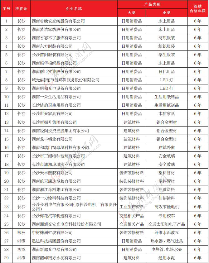 產(chǎn)品質(zhì)量監(jiān)督抽查連續(xù)6年合格企業(yè)名單