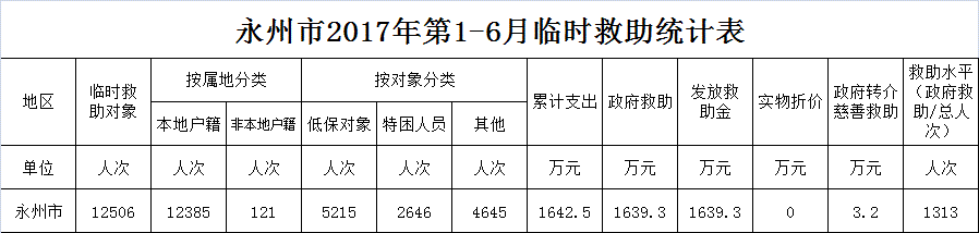 永州市2017年上半年臨時(shí)救助統(tǒng)計(jì)表