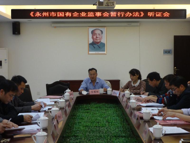 2017年4月20日《永州市國有企業(yè)監(jiān)事會暫行辦法》聽證會在瀟湘大廈九樓市國資委會議室召開,參加的單位有:市委組織部、市人大財經(jīng)委、市編辦、市政府法制辦、市財政局、市國土局、市人社局、市工商局、市政府經(jīng)融辦、市審計局、市國資委、市城建投資公司、市經(jīng)濟投資公司、市涔天河工程建設投資公司、永州市下河國家糧食儲備庫,及市人大代表、市政協(xié)委員。會議就《永州市國有企業(yè)監(jiān)事會暫行辦法》進行了討論,代表們暢所欲言,提出了很多寶貴的意見。會后將根據(jù)聽證會代表的意見,對《永州市國有企業(yè)監(jiān)事會暫行辦法》進行修改完善后提交市政府審批。
